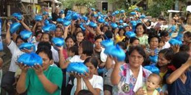 Provide food for a whole village for 3-7 days by giving individuel bags of rice to families.